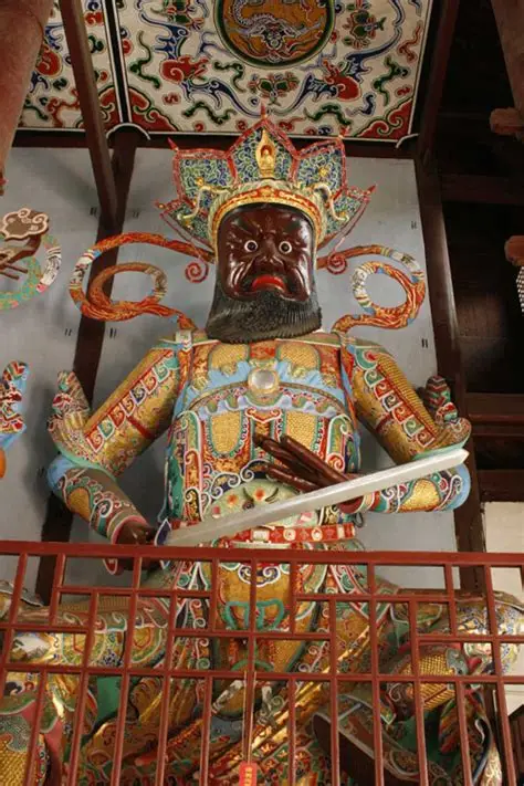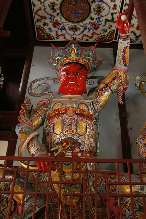 The Heavenly Kings Hall of Tianning Temple in Changzhou is an ancient building with a double-eaved gable-and-hip roof structure. The hall is 24.5 meters wide and approximately 23 meters high. Its dragon-shaped hip ridges are carved and assembled from over 30 pieces of 72-centimeter square bricks produced by the imperial kilns of the Qing Dynasty.
